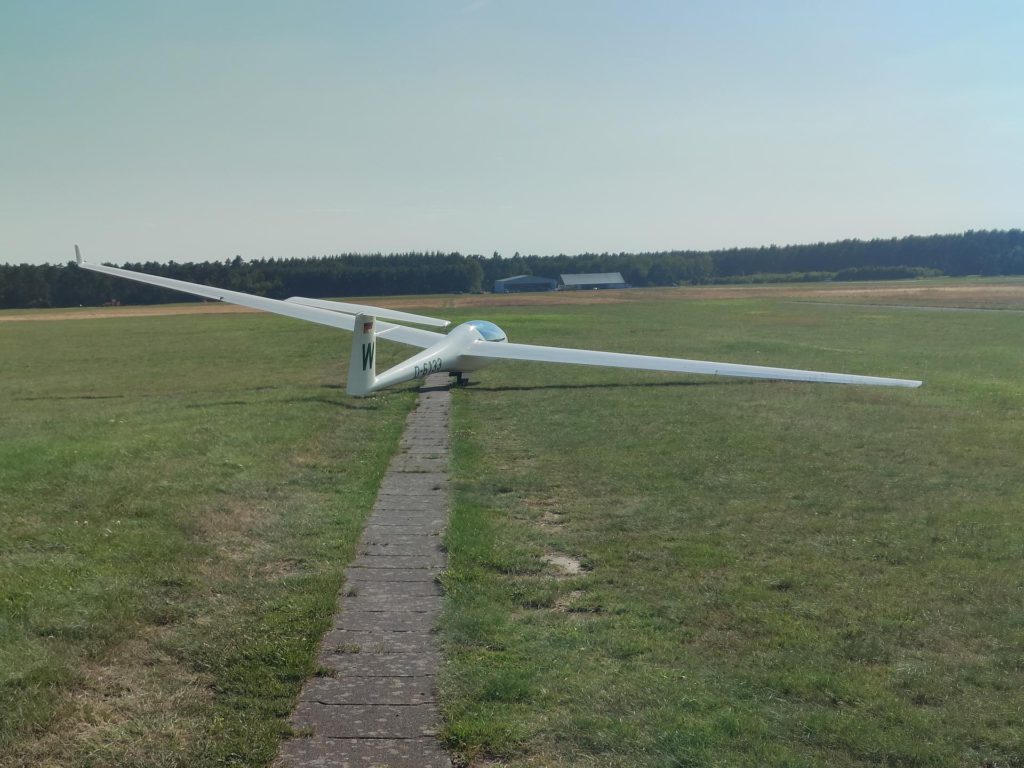 Die Wetterprognose für Runde 16 sagte für Samstag das etwas bessere Wetter voraus. Er begann windig und blau. Gegen Mittag bildeten sich am Platz 0,5 – 1/8 Quellwolken, unter denen man mit moderaten Steigwerten aus der Winde weg kam. Richtung NW konnte man am Horizont bei Osnabrück gute Entwicklungen erkennen. Maximilian Brune und Christian Lang flogen also mutig in die Richtung ab. Der Streifen ging dann ganz gut bis ca. 10 km westlich Achmer, wo die Wolken unter aufziehenden Cirren zerfledderten und nicht mehr so toll zogen. Also umgekehrt, einen Schlag nach Süden und dann zurück nach Hause.