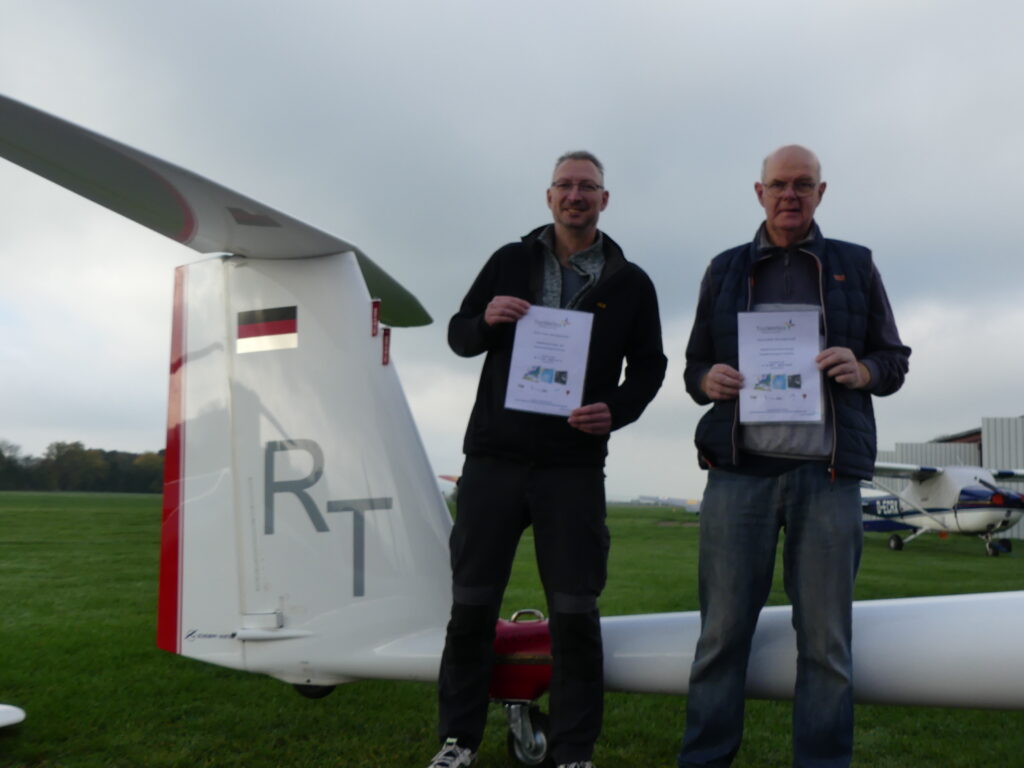 Michael Sasse erhielt sogar zwei Weinflaschen, da spontan der „Immer dabei-Preis!“ ausgerufen wurde. Michael hat an allen fliegbaren Wochenenden teilgenommen und an denen wo sein Name nicht in der Liste auftaucht war er als Copilot im Doppelsitzer mit von der Partie.