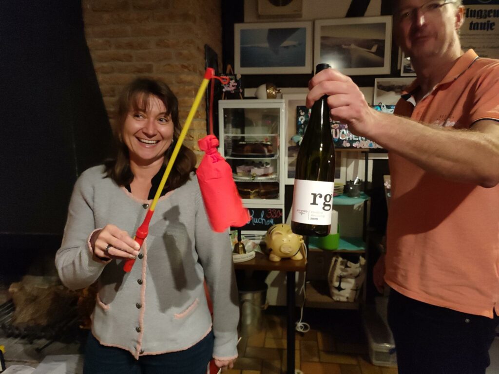 Uli der Champion des Jahres 2022 hatte sich für die konkurrierenden Fliegerfreunde eine besondere, zusätzliche Überraschung einfallen lassen. Damit es ihnen in der kommenden Saison nie am „Aufwind“ im richtigen Moment mangeln würde überreichte er Ihnen einen edlen Tropfen mit selbigen Namen. Nach dem Genuss einer solchen Flasche Wein vor Saisonbeginn 2023 kann eigentlich nichts mehr schief gehen.